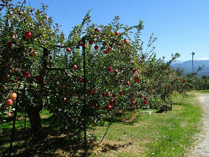 南信州は地理的に太平洋に近いため、降水量の多さや生育期間中の気温の高さ、収穫期の気温の寒暖差などから、りんご自体に濃い甘味が含まれ、水分が多いジューシーな果実になります。